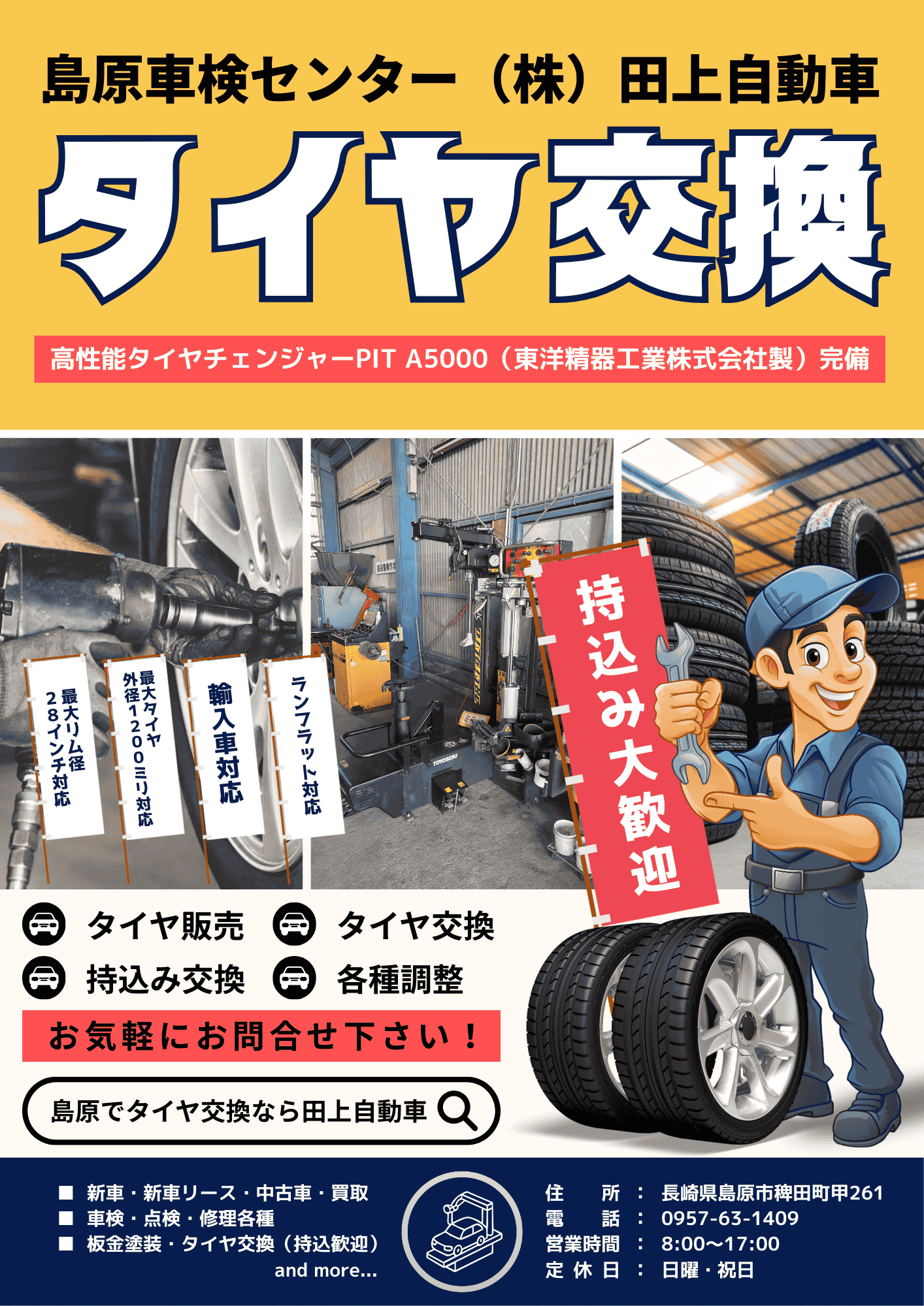 皆様こんにちは、島原車検センター㈱田上自動車です。