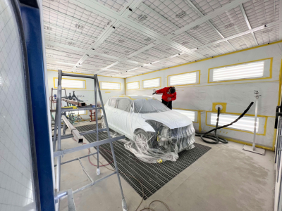 塗装専用ブースは、塗装に理想的な均一でやわらかい風の流れを作り出すことができます。また、優れた空調で見えない空中の浮遊ゴミが乾燥中の塗膜に付着することを防ぐため、美しい仕上がりに。さらに、ブース内室温調整で、塗料メーカー指定の乾燥温度で乾燥させるので、頑丈で長持ちする塗膜ができます。